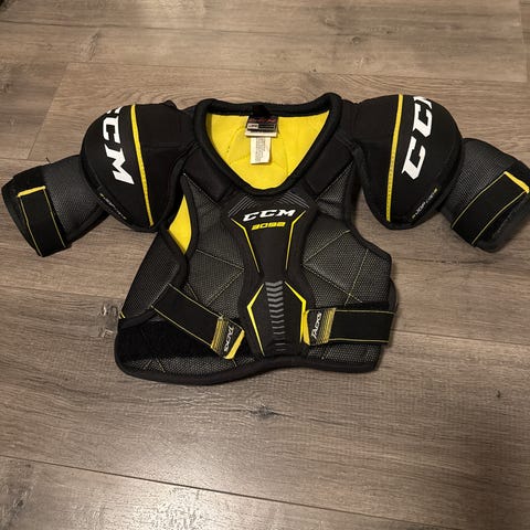 CCM VT skulderbeskytter for ishockey i størrelse medium. Beskytteren har polstrede skuldre og brystparti med justerbare stropper for tilpasning. Egnet som overkroppsbeskyttelse ved ishockeyspill og annen isidrett der skulder- og brystbeskyttelse er nødvendig.
