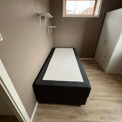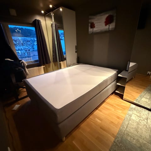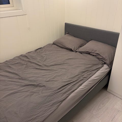 Kun brukt som gjesteseng og sovet i et fåtall ganger. Kan enkelt skrus fra hverandre og transporteres.