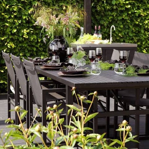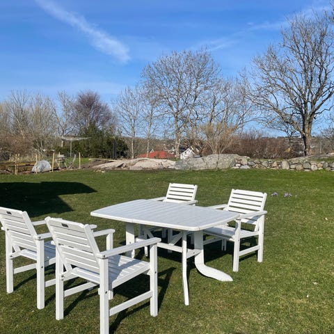Dette er et stilrent og tidløst utemøbelsett med høy kvalitet og god sittekomfort.