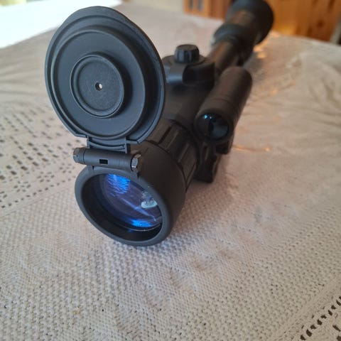 Yukon Photon XT riflescope. Kikkertsikte for rifle med digitalt nattoptikk-system. Modellen leveres med justerbare festeringer, gummiøyemusling og linsebeskytter. Siktet har integrerte betjeningsknapper på siden av huset og er konstruert i robust materiale tilpasset montering på rifle. Leveres med original eske, bruksanvisning og transportetui, slik det vises på bildene.