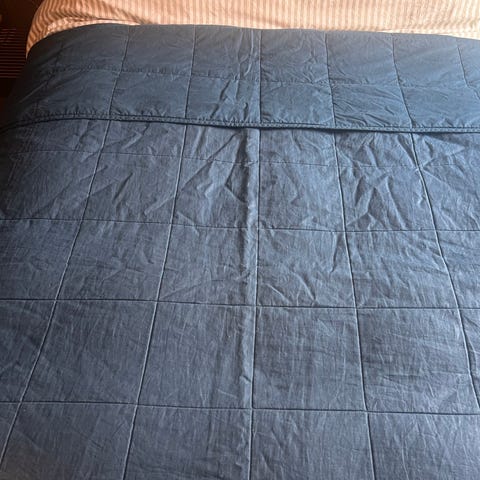 Sengeteppe i mørk grå på den ene siden og svart på den andre i rutet, quiltet mønster. Kan brukes på begge sider, i stue, soverom eller andre oppholdsrom for ekstra varme og komfort.
