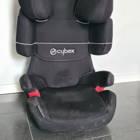 Cybex barnesete i størrelse 36. Barnesetet er i svart tekstil med lyse kontrastsømmer og røde belteføringer. Setet har høy rygg og sidebeskyttelse rundt hode og overkropp, samt armlener ved sitteflaten. Egnet for bruk fremovervendt i bil med bilens trepunktsbelte. Passer for større barn innenfor størrelses- og vektområdet som tilsvarer størrelse 36, i henhold til produsentens spesifikasjoner.