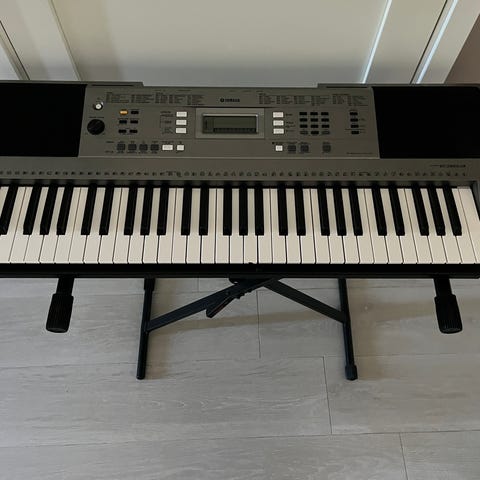 Yamaha PSR-295 keyboard med 61 tangenter. Modellen har innebygde høyttalere, display i midten og ulike kontrollknapper for lyder, rytmer og funksjoner. Passer til øving hjemme, akkompagnement og generell musikkopplæring. Kan brukes både av nybegynnere og mer erfarne brukere som trenger et portabelt keyboard med flere funksjoner og lydbanker.
