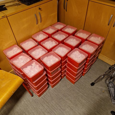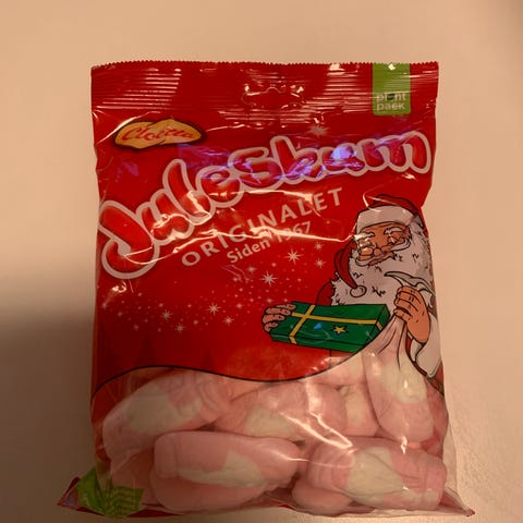 Selger en boks med juleskum. Uåpnet, holdbar til august 2026.