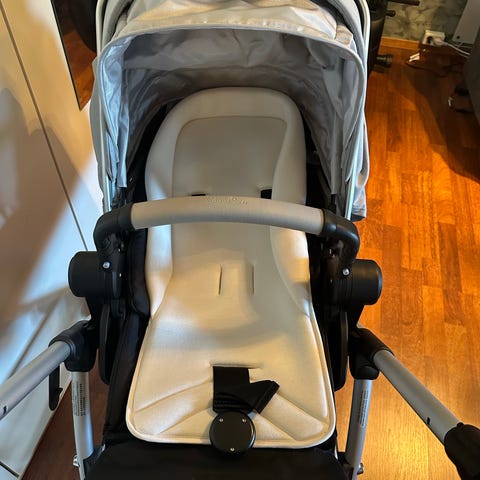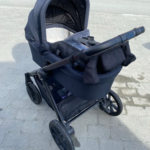 Følger med bilsete, liggedelen som nesten ny, baby sekk som tilhører til vognen, regntrekk og vanlig sette når barna blir eldre enn 6 måneder dvs når barn klar til å sitte seg.