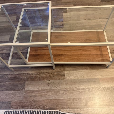 Salongbord fra Ikea. Glassplatene har noen svake riper, som er vanskelig å få med på bilde. De synes ikke noe særlig i vanlig stuebelysning.