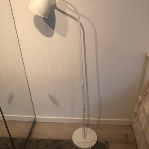 Fin stålampe fra ikea med to lyskilder, den lille lampen kan justeres.