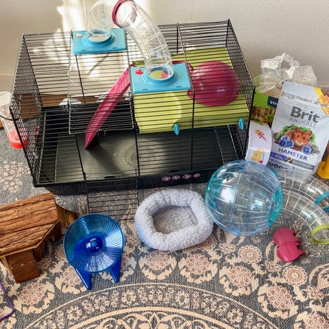 Hamsterbur 70 x 44 cm med tilbehør selges