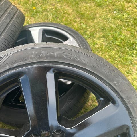 En av felgene er litt kantkjørt ( se bilde), ellers er de i god stand.