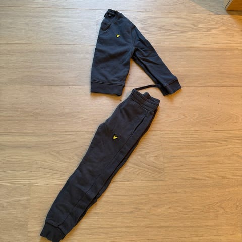 Lyle & Scott joggebukser for gutt i størrelse 14/15 og 15/16. Bukse i blå og grå farge i bomull. Modellen har elastisk linning med snøring og ribbekanter nederst på bena. Passer til hverdagsbruk og fritidsaktiviteter.