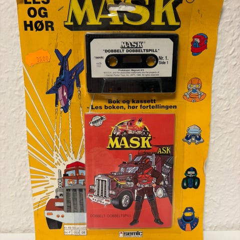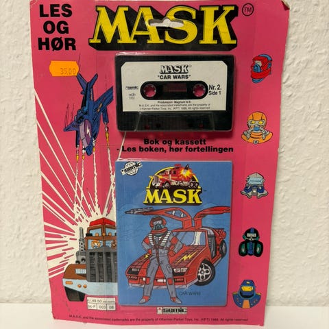 MASK Car Wars bok. Heftet bok fra MASK-serien med tittelen «Car Wars». Boken har illustrert forside med figur og bilmotiv. På baksiden er den oppført som en del av MASK-serien sammen med tittelen «Dobbelt dobbeltspill». Egner seg som lesestoff eller samlerobjekt for MASK-serien.