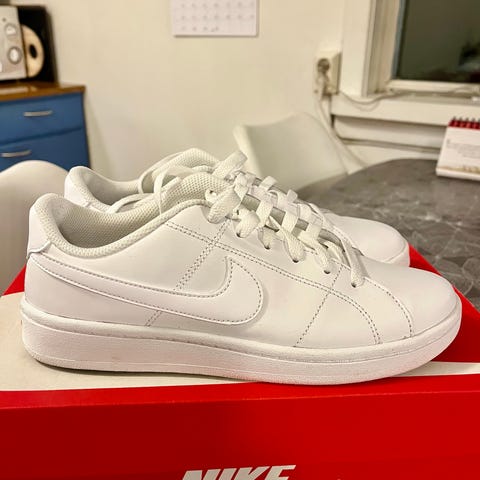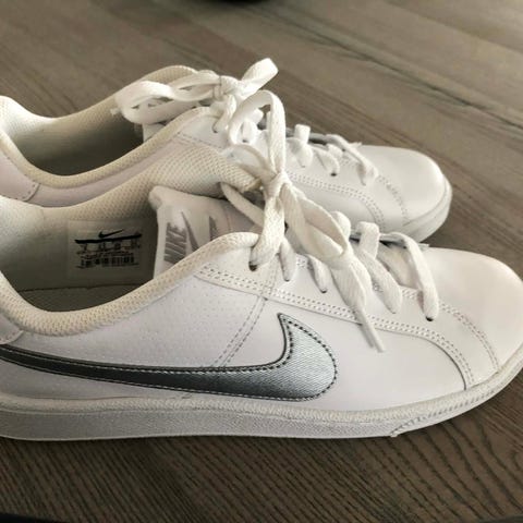 Lite brukte Nike-sneakers i størrelse 39. Modellen er lav med klassisk snøring. Skoene er hvite med Nike-logo på siden og bak.