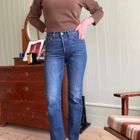 Levi's jeans for dame i størrelse S med livvidde W27. Buksen er laget i blå denim. Klassisk 5-lommers modell med beltehemper og glidelåsgylf med knapp. Passer til hverdagsbruk og kan kombineres med ulike topper og sko for både uformelle og mer oppkledde antrekk.