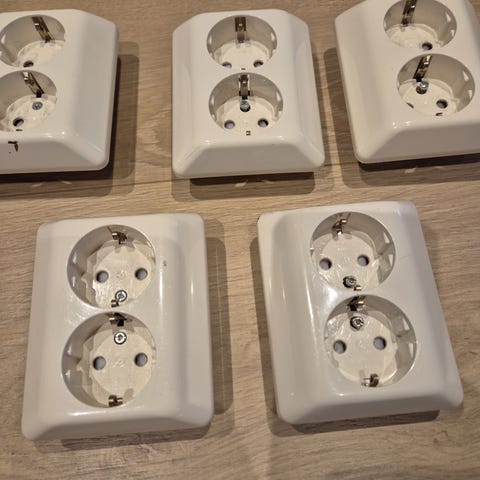 Stikkontakter ELKO dobbel innfelt. Kjøpt og montert men var ikke like som de andre i huset så byttet etter 2-3 måneder. Selges helst samlet. Sendes viss kjøper betaler porto. Pris er pr stk.