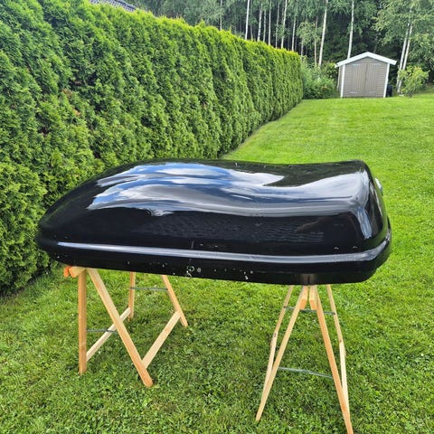 Skiguard takboks i grønn farge. Veldig lite brukt. Takboksen monteres på biltakets takstativ og gir ekstra lasteplass til ski, bagasje eller annet utstyr. Innvendig er det festesystem med stropper og holdere for å sikre innholdet under kjøring. Ytre skall er i glassfiber for beskyttelse mot vær og vind. Egnet for bruk på personbil med kompatibelt takstativ.