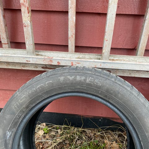 Dekkene er merket Nokian Hakka Blue 2 og har dimensjon 205/55 R16. Produksjonskode på dekket viser 5220. Felgene er sorte stålfelger med flerhullsdesign.