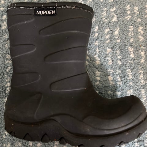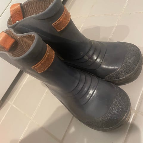 Kuling gummistøvler for barn i størrelse 26. Unisex-modell i grå farge med kraftig såle for godt grep. Støvlene er laget i vanntett materiale med glatt innside og hempe bak for enklere av- og påkledning. Passer til bruk i regnvær og vått underlag.