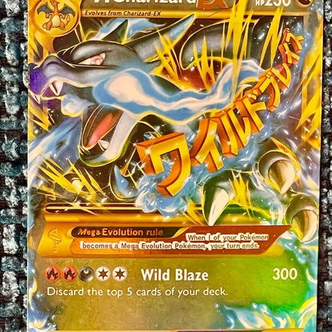 Pokémon Mega Charizard EX samlekort. Lagt rett i sleeve.