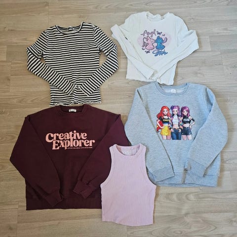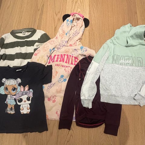 Den ene er str 122/128, men er lik i str som de mindre. Derfor tok jeg den med her.