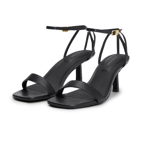Zara hæler i størrelse 38. Svarte hæler med tynne stropper og ankelreim/snøring.