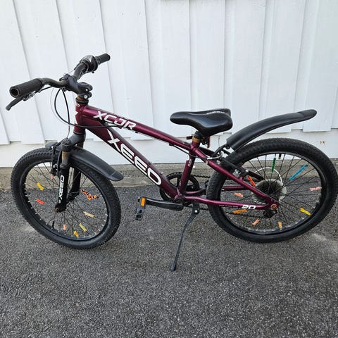 Selger en solid og godt utstyrt Xeed XCR 20” barnesykkel i fin burgunder farge. Perfekt til både skolevei, fritid og lett terreng.