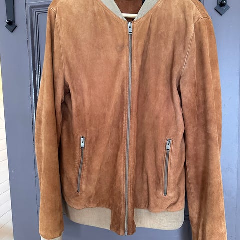 Sjokoladebrun, semsket skinnjakke fra det italienske luksusmerket Mandelli.