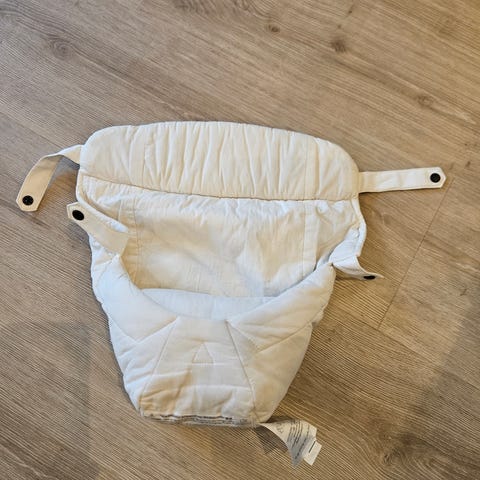 Ergobaby Four Position 360 bæreseleinnlegg i beige farge. Innlegget er polstret for ekstra støtte og komfort til spedbarn når det brukes sammen med Ergobaby Four Position 360-bæreselen. Justerbar stropp foran for å sikre god passform rundt barnet. Egnet for bruk i bæresele for å gi støtte til hode, nakke og rygg hos de minste barna, spesielt nyfødte og små spedbarn som trenger ekstra stabilitet i selen.