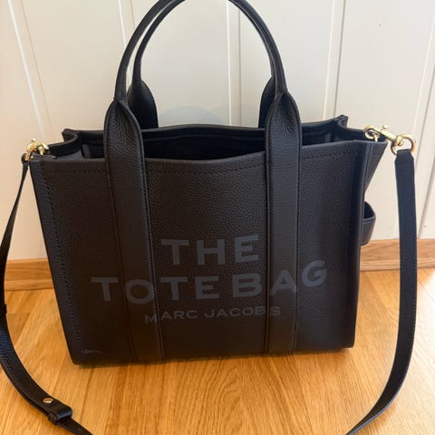 Selger min Marc Jacobs The Tote Bag i sort pebbled lær med gull-hardware. Kommer med dustbag og avtakbar crossbody-stropp.