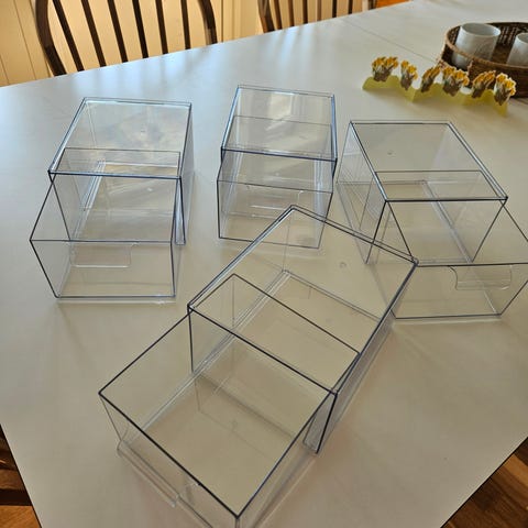 5 stk bokstativer/støtter i plast selges samlet for 125,- 3 stk er fortsatt med beskyttelsesfilm på og er ubrukt. De to andre er så godt som nye og uten anmerninger.