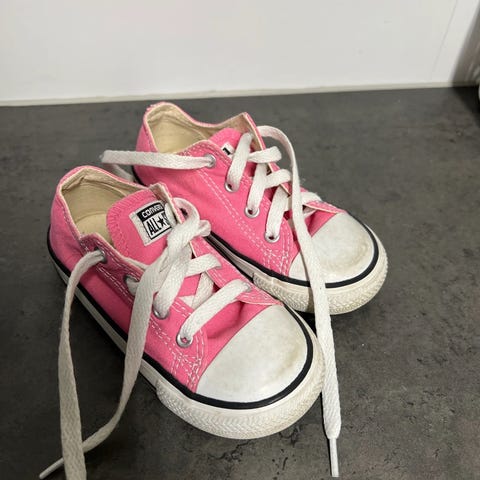 Converse All Star sko til barn i størrelse 21. Modellen er i lav variant med snøring. Egnet til hverdagsbruk og innendørs- og utendørsaktiviteter der lette og fleksible sko ønskes. Lite brukt.