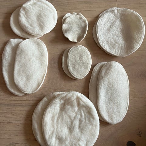 2 par ammeinnlegg i ull. Det ene er pent brukt, det andre er ubrukt. Alltid hatt vanlig ammeinnlegg under.