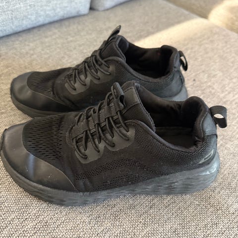 Svarte joggesko selges. Ble brukt som «korpssko». Kan sendes eller hentes på Tåsen