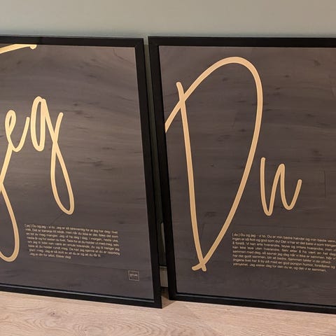 IKEA bilderamme i svart. Rammen har en hvit plakat med tekstmotiv («UNDIKK»).