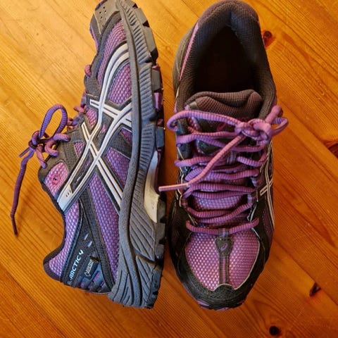 New Balance WT573 løpesko i størrelse 39. Modellen er egnet til løping og har overdel i pustende mesh med syntetiske forsterkninger. Skoene har snøring, polstret hælkappe og tunge, samt yttersåle med grovt mønster tilpasset løping på variert underlag. Fargekombinasjon blå og lilla med kontrastdetaljer. Passer til løping og annen trening utendørs.