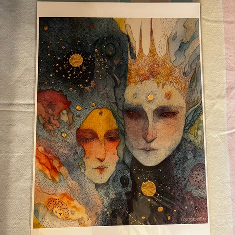 A4 trykk, dreamland, selges som det er. Printet på Canon fine art paper «photo rag». Dette finnes også som A3 print. Ligger i en plastlomme, derfor kanskje noe gjenskinn. Se bilder.