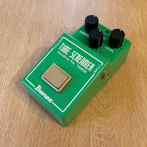 Ibanez Tube Screamer TS 808 selges pga minimering av plass på brettet.