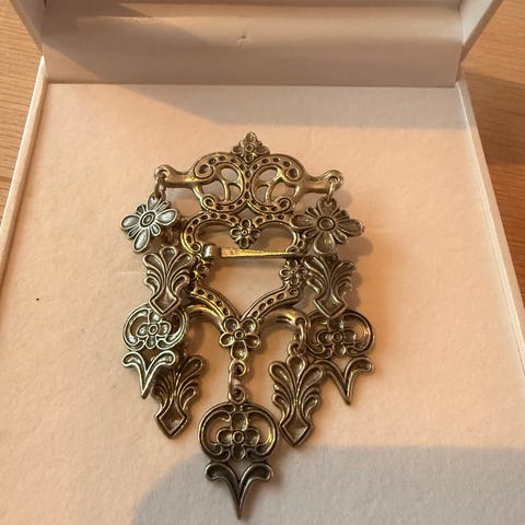 Flott sølje Str: 4,5x2.cm. Stemplet 830 A.Ø pris: 375,-smykke esken medfølger!