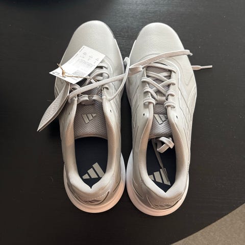 Adidas golfsko i størrelse 42 2/3. Skona er brukt en del men er forsatt fine og fungerar bra.