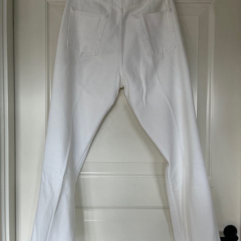 Jacob Cohën bukse for dame i størrelse M. Modellen er i hvit farge og laget i bomull. Buksen har klassisk femlommers design med glidelåsgylf og knapp i livet. Passformen er smal med rette ben. Størrelse er merket 29 i livet. Egner seg til hverdagsbruk og kan kombineres med ulike topper og sko for både uformelle og mer pyntede antrekk.small/ medium