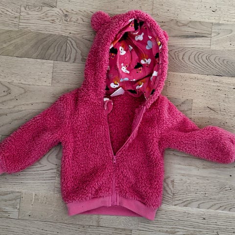 Newbie jakke for barn i størrelse 98. Jakken er rosa og laget i polyester med myk, strukturert overflate. Modellen har hette, glidelås foran og ribbestrikkede mansjetter. Passer til jente og kan brukes som ytterlag på kjølige dager.