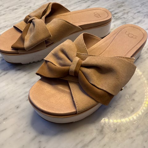 Pene UGG Aubrey Slide platform sandaler i str. 37 selges. Kun brukt to ganger så skinnet har ikke rukket å forme seg etter min fot. Nypris 1899kr og selges for 1000kr.