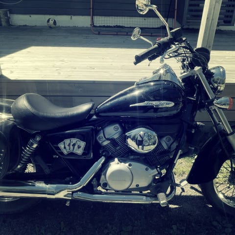 Sitter veldig fint og lavt på sykkelen.