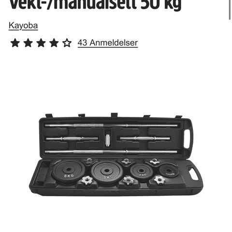 Totalvekt: Ca. 37 kg inkludert stangen.