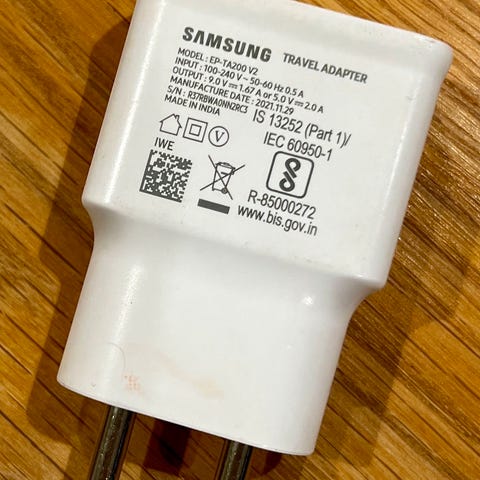 Samsung lader med USB‑C kabel i svart.