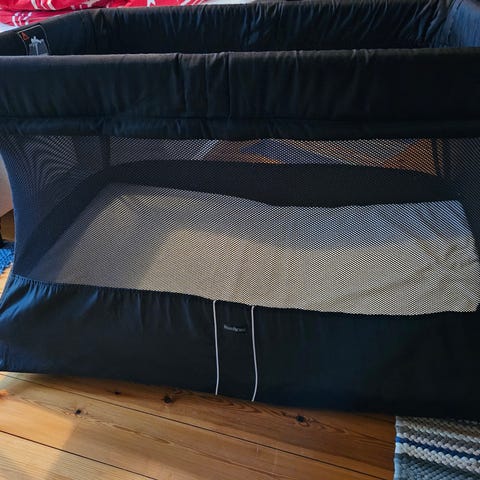 Sammenleggbar reiseseng fra Beemoo selges. Leveres med original transportbag og fremstår komplett. Praktisk løsning som er enkel å slå opp og pakke sammen, egnet både hjemme og på reise.
