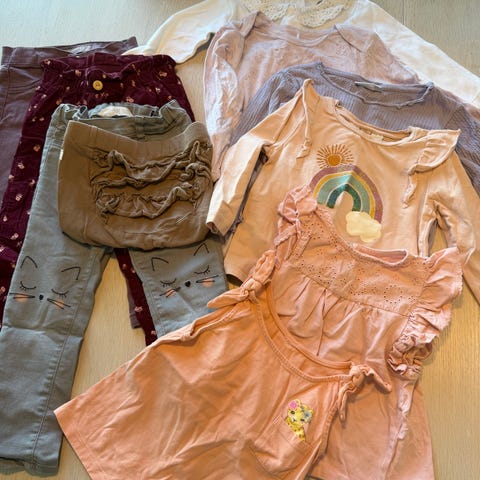 En klespakke til jente med ca 70 plagg + masse sokker 😊 2 gensere har noen skjolder, ellers hele og rene klær uten merker.