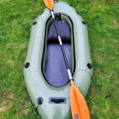 Kajakken er enkel å transportere og tar liten plass når den er pakket sammen – ideell for både nybegynnere og erfarne padlere.
