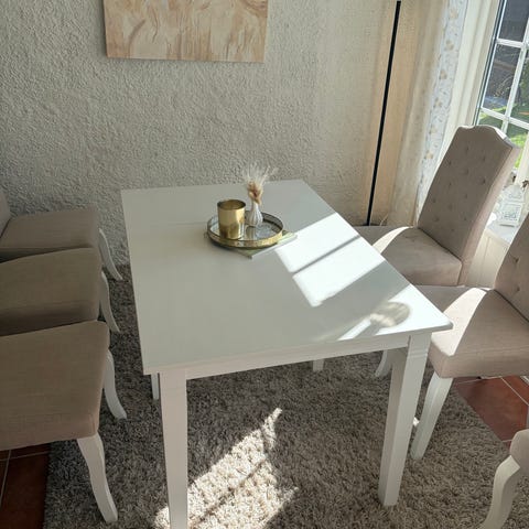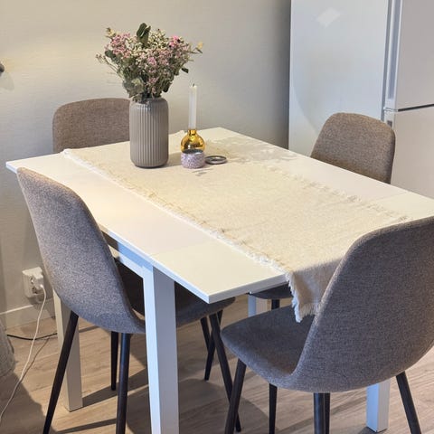 Lite brukt spisebord med 3 stoler.