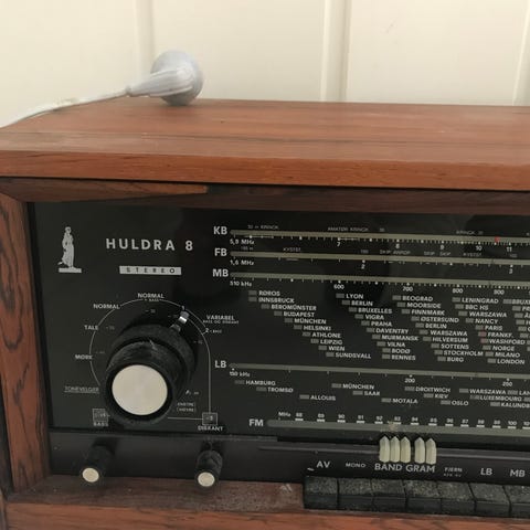 Hel og fin Huldra 10. Virker på phono, tape og aux. FM er testet med antenne. AM er delvis løs dvs søkeren går lett mot venstre men slurer mot høyre. Skalabelysning samt alle indikatorlamper fungerer. NB denne er ikke loddet om til 240V. Har ikke veldig lyst til å sende denne men håper den vil bli hentet på Fjellhamar. NY PRIS
