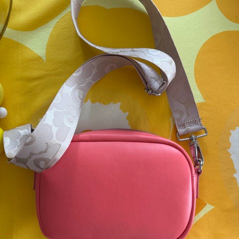 Vesken har justerbart reim og er cirka 32×32 cm. Har flere lommer inne. Vesken ble brukt kanskje par ganger og fremstår som ny.